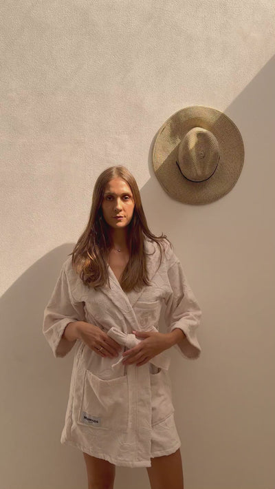 Wrap yourself in the soft elegance of Mermaid Pearl, a bathrobe inspired by untouched beaches and morning light.